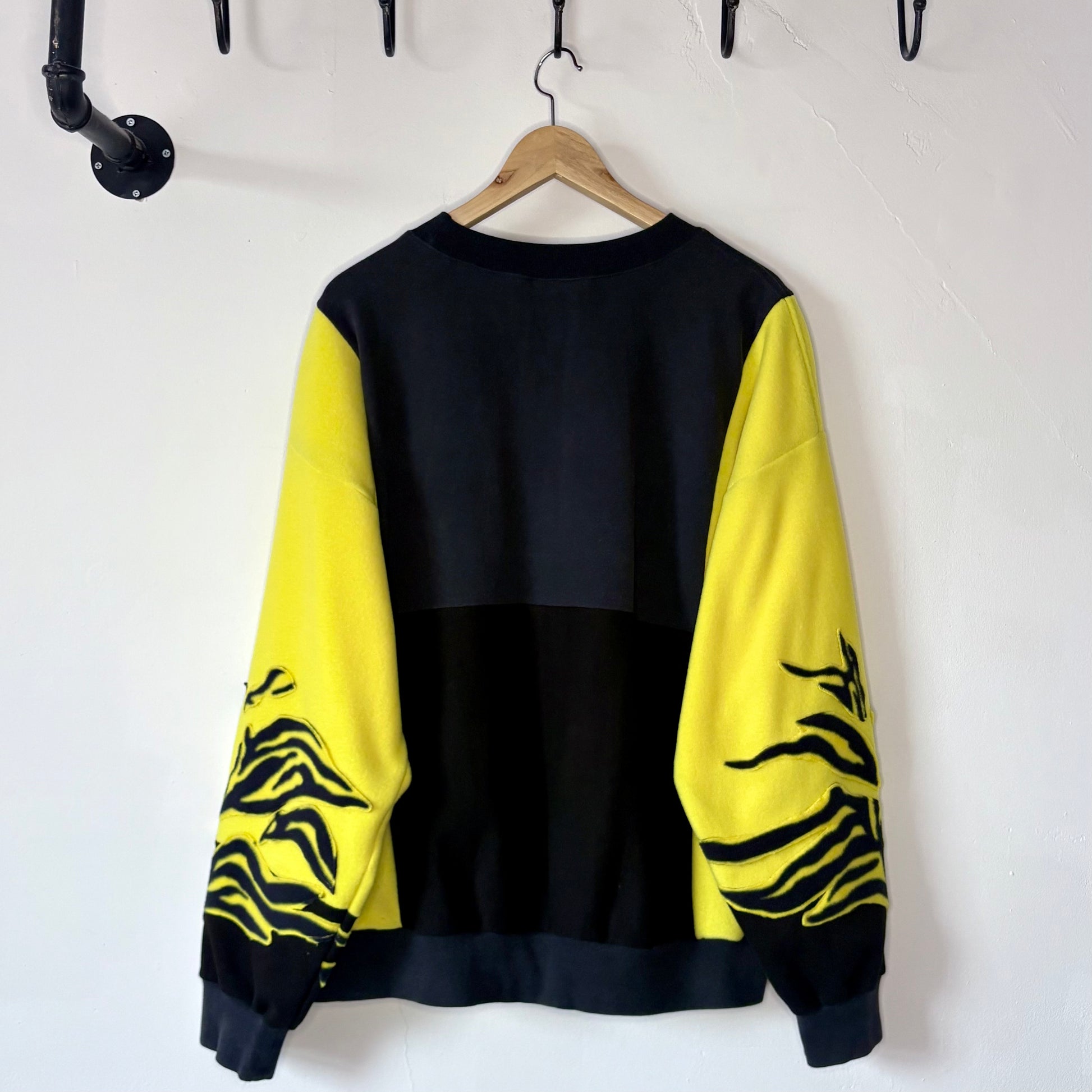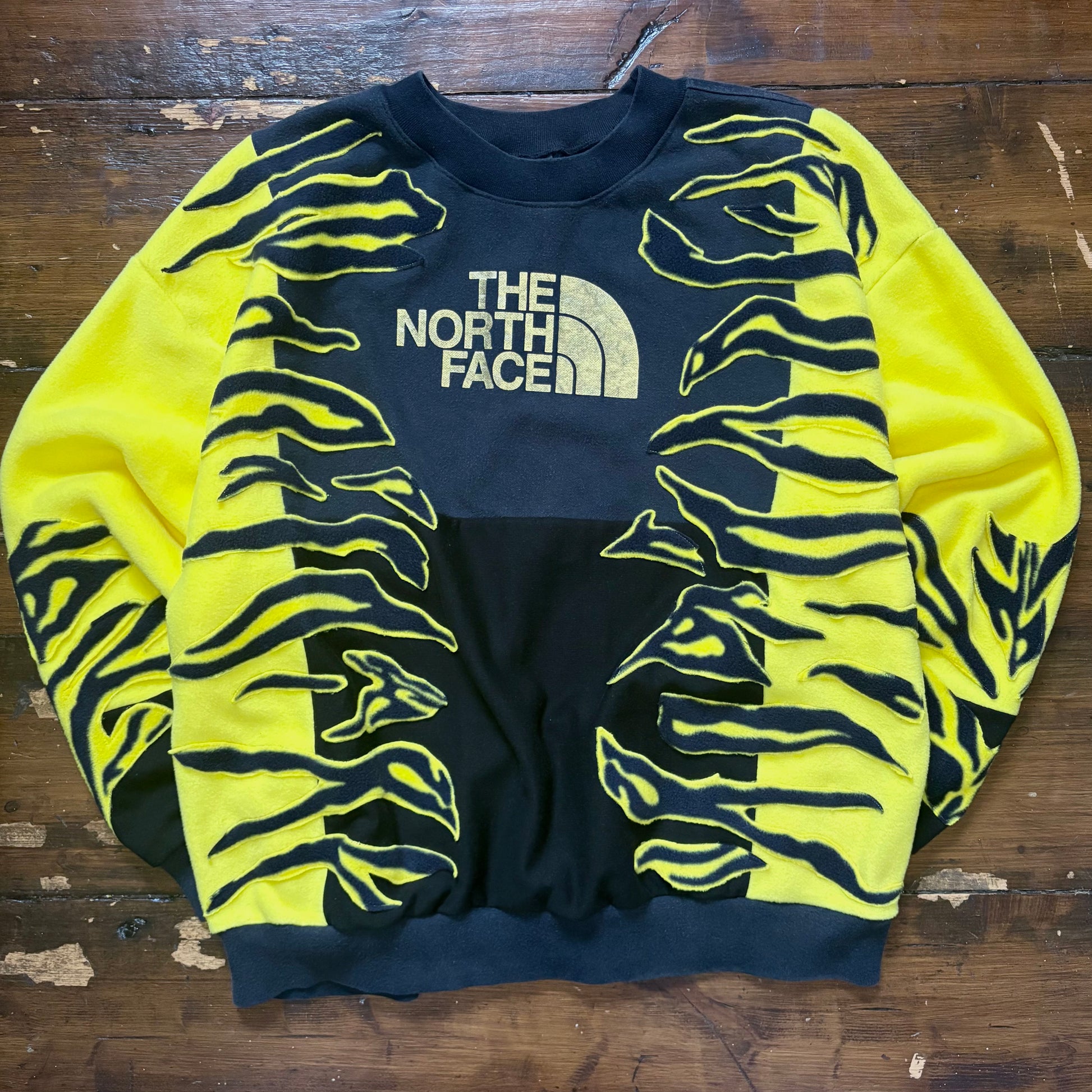 North face yellow zebra stripe patchwork fleece sweatshirt.
